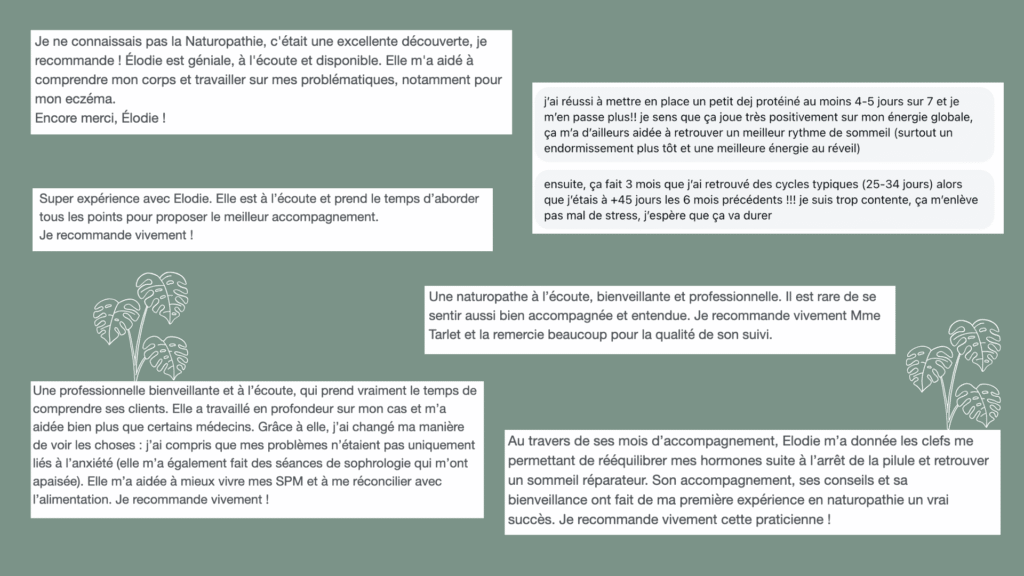 Mon approche combine le meilleur des deux mondes : la sagesse et les précieux outils de la Naturopathie traditionnelle mais aussi la précision et la vision plus scientifique / biologique de la Naturopathie fonctionnelle, afin de pouvoir vous proposer un accompagnement personnalisé, concret et durable, adapté à vos besoins.